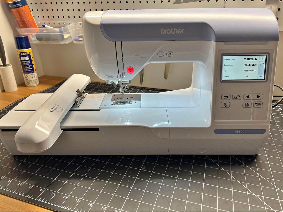 Brother PE800, fairly new condition. Comes with its maintenance accessories, an almost full box of white bobbins, and an extra set of 4 hoops (different sizes).