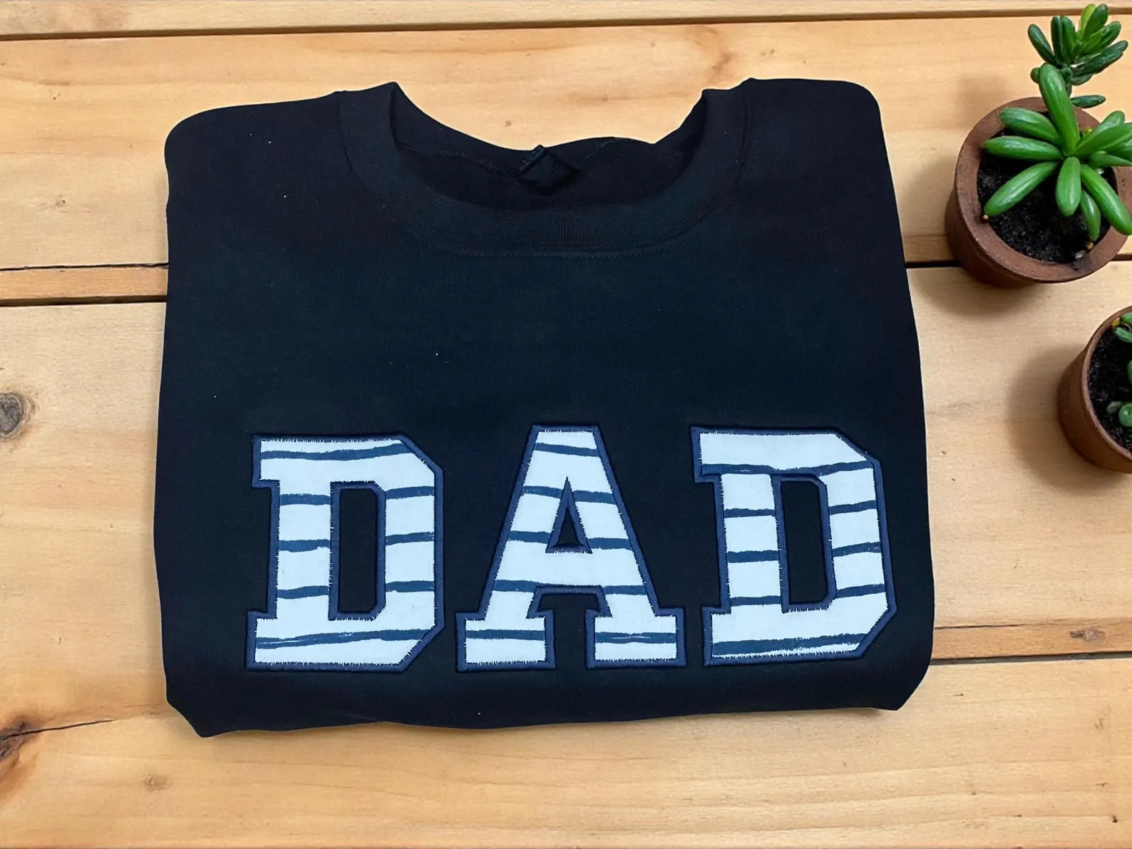 Capture the sweetest memories of your little one with a personalized sweatshirt, made using their outgrown baby clothes. Each letter in Dad, Dada, Daddy, Papa (or even Grandpa, Uncle, Brother) is carefully appliquéd with fabric from your child’s clothing, creating a one-of-a-kind keepsake that’s as sentimental as it is wearable.