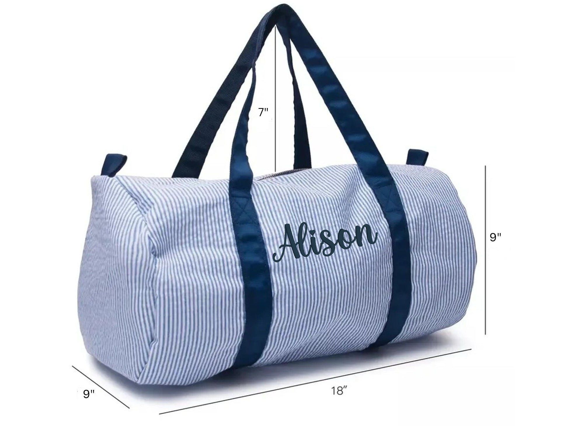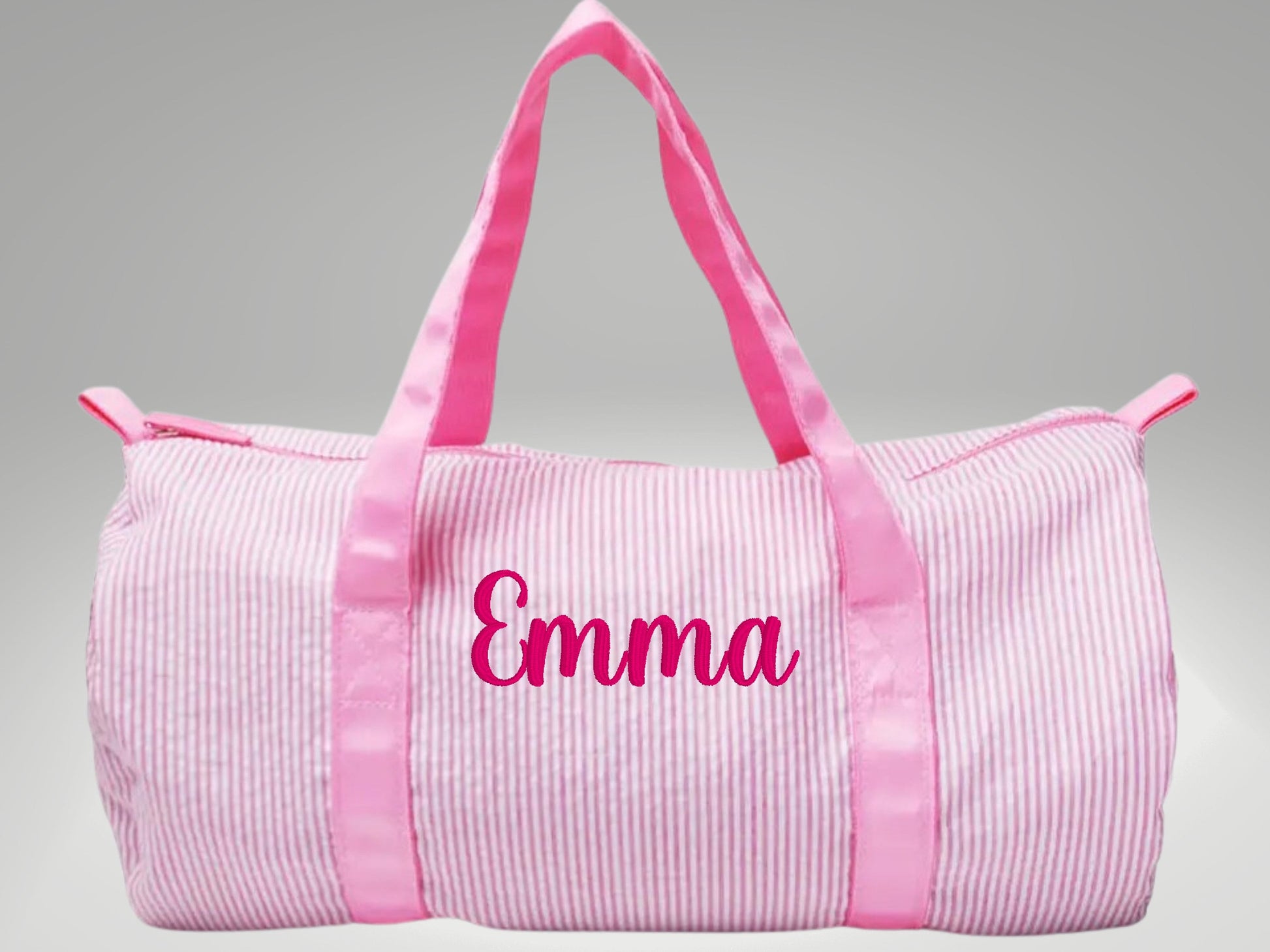 From sleepovers to mini adventures, our Seersucker Personalized Travel Bag for Kids is the perfect companion for your child's journey. Order now and let them travel in style and comfort!